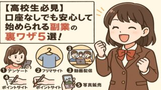 高校生 【高校生必見】口座なしでも安心して始められる副業の裏ワザ5選! 高校生が口座なしで始められる副業の裏ワザを5つ紹介。銀行口座を持たないあなたでも始められる方法を詳しく解説します。収入を得る新しい手段を見つけましょう。 高校生